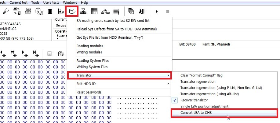这种情况告诉我们这里有些不对劲。让我们根据第一个橙色的LBA检查物理地址(PBA)(735626512 )。使用“将LBA转换为CHS”选项,然后键入所需的LBA编号以获取信息: