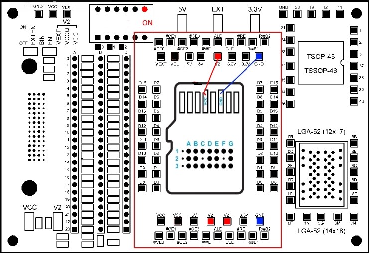 实际上,电路板适配器包含电源换向方案和连接到内存芯片(单片)的总线。总线与PC-3000 Flash阅读器相同,但电源转换方案比PC-3000 Flash阅读器具有更多选择。
